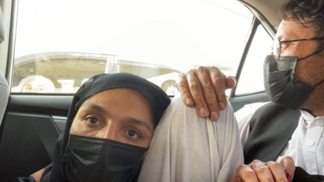 No dia 18, ela providenciou um carro para levá-la com sua família ao aeroporto de Cabul. Ela se escondeu embaixo do banco de trás do carro, para se proteger do Talibã quando o carro passava por postos de controle dos militantes.