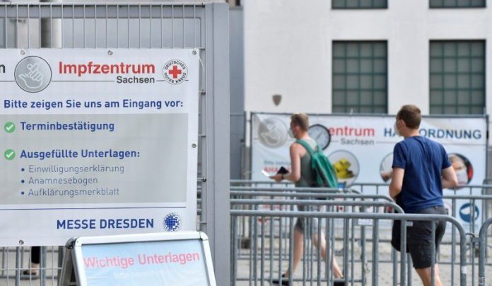 Uma quarta onda de infecções muito severa que afeta os não vacinados. Pessoas vão a centro de vacinação contra a Covid-19 em Dresden, na Alemanha, em 29 de julho de 2021