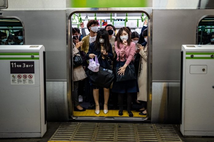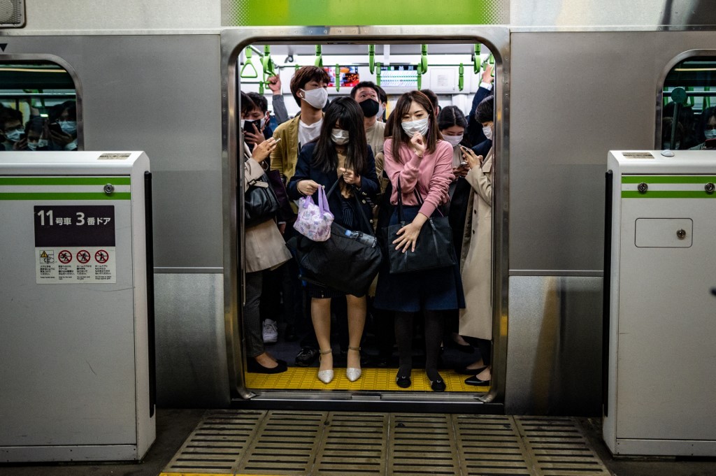 Homem atirou ácido sulfúrico contra o rosto de um jovem de 22 anos que entrava no elevador da estação Shirokane Takanawa; rapaz teve boa parte da face queimada e uma mulher que passava pelo local no momento escorregou no líquido e sofreu queimaduras leves nas pernas. Agressor está foragido. Passageiros em metrô de Tóquio, em foto do dia 23 de abril