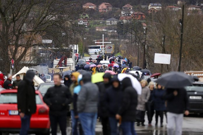 Caminhões e outros veículos pesados bloqueiam várias das principais estradas que levam a dois postos de fronteira com a Sérvia, ambos fechados para o tráfego. Tiros foram disparados a partir de barricadas e um policial kosovar-albanês foi ferido.