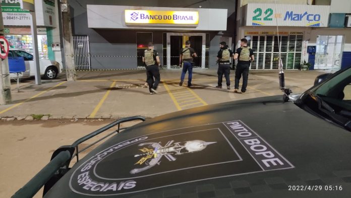 A agência do Banco do Brasil de Divinópolis, no interior do Tocantins, foi interditada nesta sexta-feira (29) após ser invadida por uma quadrilha fortemente armada. O arrombamento e explosões deixaram o local parcialmente destruído. A empresa informou que “não há previsão de reabertura da unidade”.