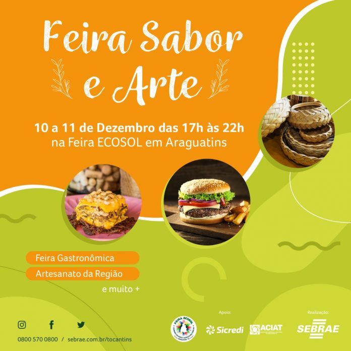 Começa nesta quinta-feira,10, a primeira edição da feira Sabor e Arte em Araguatins. A gastronomia e o artesanato regional serão os grandes destaques do evento que acontecerá presencialmente até o dia 11 de dezembro, em frente a rodoviária de Araguatins, das 16h30 às 21 horas.