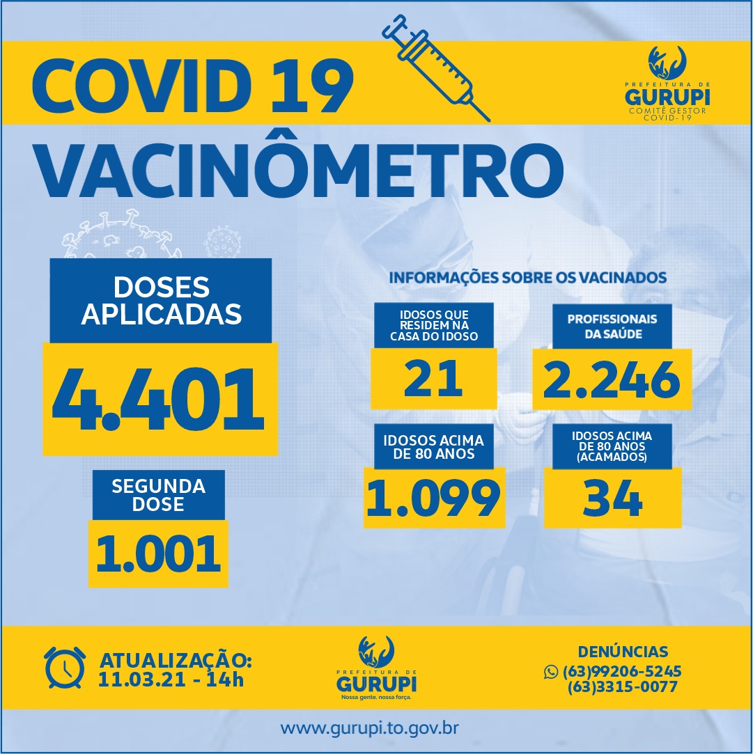 Até às 14h desta quinta-feira, a coordenação de imunização da Secretaria Municipal de Saúde de Gurupi informou que 4.401 pessoas já foram vacinadas.