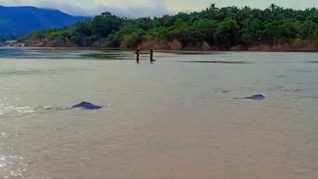 Moradores de Miracema do Tocantins filmaram o momento em que grupo de botos nada no rio Tocantins, perto da praia do Funil. As imagens feitas na manhã desta terça-feira (1º) mostram os animais se exibindo e ficando bem próximos das pessoas nas margens.