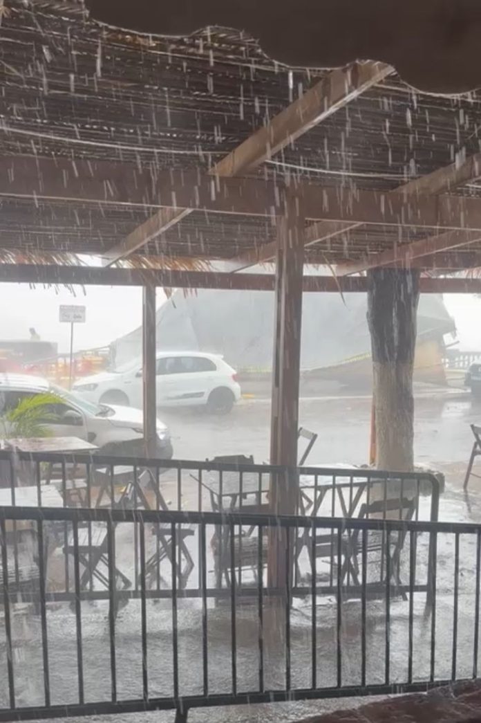 Em um dos vídeos, a ventania assustou pessoas que estavam em um flutuante e ainda derrubou os utensílios e objetos dentro da embarcação. (Veja no vídeo acima)