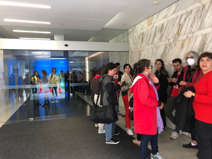 Fila em frente à Embaixada brasileira em Wellington tem eleitores vestidos de vermelho e de verde e amarelo