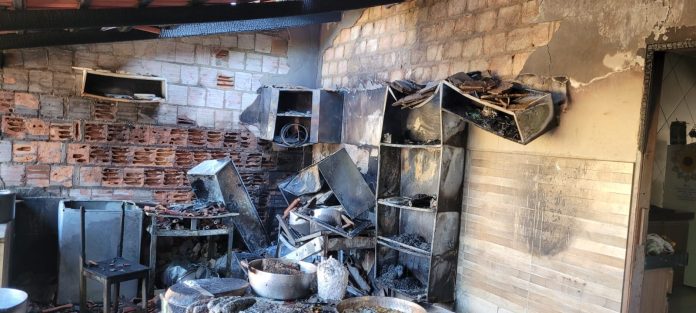 Os bombeiros foram chamados e constataram que o fogo se concentrava na área aos fundos da casa, onde funcionava o a cozinha do restaurante. Os militares desligaram a energia e apagaram as chamas.