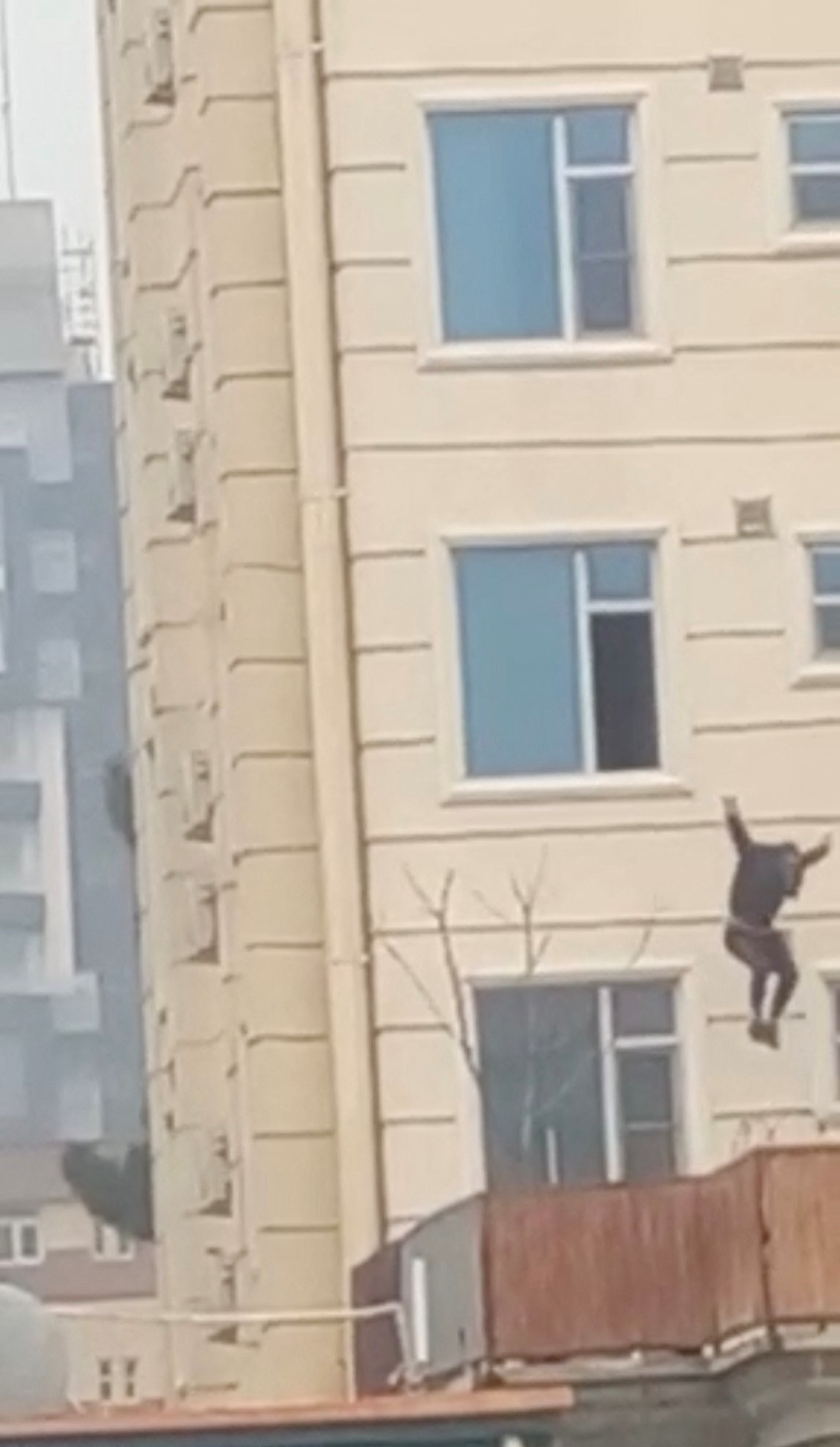 Uma pessoa pula da janela de um hotel no bairro de Shahr-e-Naw em meio a sons de tiros em Cabul, Afeganistão, em 12 de dezembro de 2022