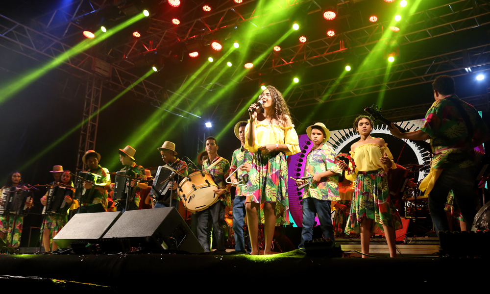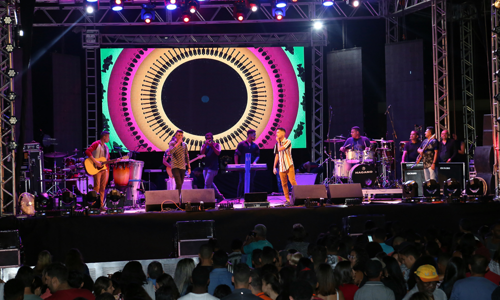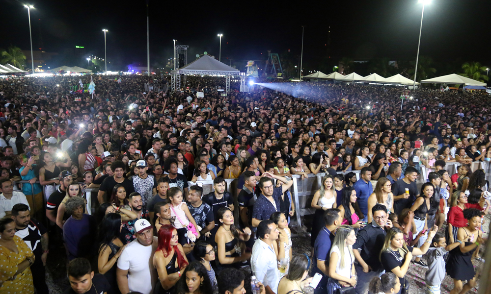 Antes de Solange Almeida subir ao palco, o público vibrou com a apresentação animada da Banda Sanfônica da Secretaria de Estado da Educação, Juventude e Esportes (Seduc). A programação invadiu a madrugada com a dupla Cleiton e Camargo.