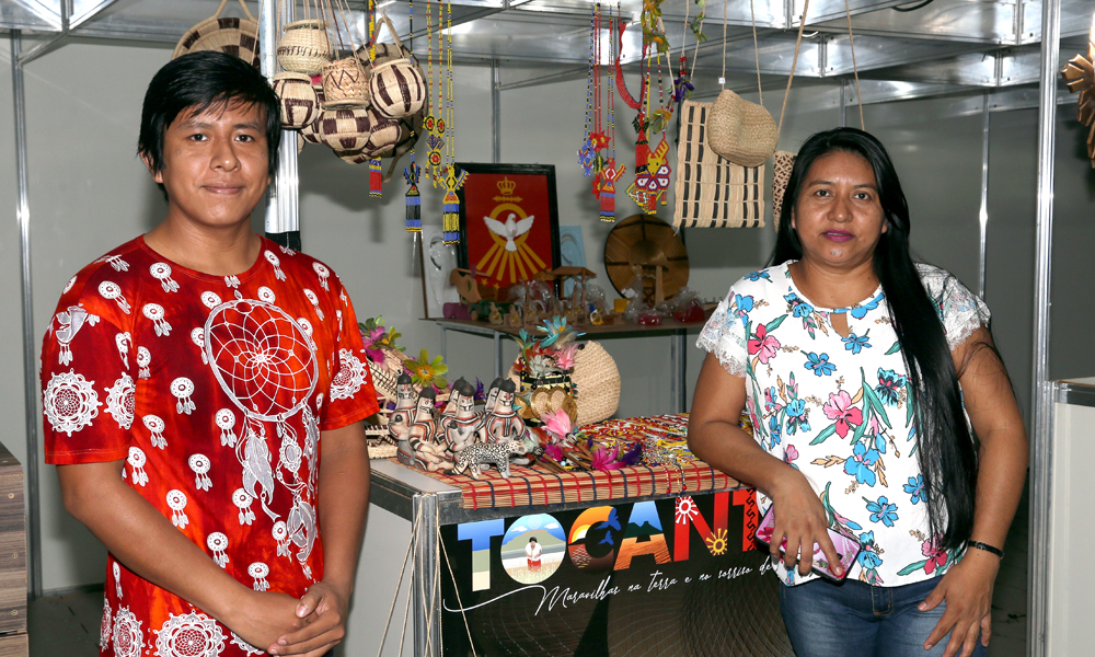 Txibie e Bikunaki Karajá deixaram a Aldeia JK, na Ilha do Bananal, para comercializar sua produção artesanal de forma direta ao pública.