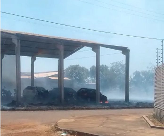 Incêndio destruiu um carro e queimou vegetação em três quadras de loteamento. Caso está sendo apurado pela Polícia Civil. Incêndio atinge galpão que é utilizado como estacionamento em Luzimangues