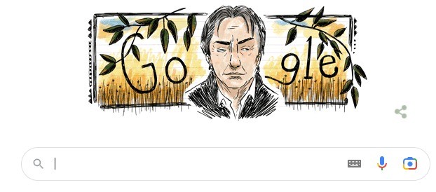 Quem entrar no Google neste domingo (30) vai encontrar o “doodle” (versão interativa do logo do site) em homenagem a Alan Rickman (1946 – 2016), ator inglês famoso pelo papel como Snape na série “Harry Potter”.