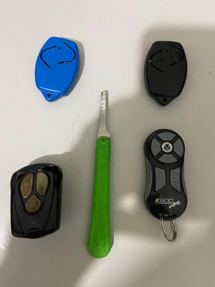 Ainda de acordo com o delegado, o indivíduo preso hoje é o principal suspeito de ter subtraído objetos no interior de veículos estacionados no Hospital Geral de Palmas no dia 22 de outubro de 2020. Na ocasião, a ação foi gravada por transeuntes e transmitida em mídias sociais locais. Também segundo revelaram as investigações da Polícia Civil, os crimes de furtos cometidos no interior de veículos eram realizados com a utilização de um aparelho de controle remoto, popularmente conhecido como “Chapolim”, sendo que o criminoso ao perceber a aproximação de um carro, ficava de prontidão e quando o motorista saía do veículo e acionava o alarme que por sua vez aciona as travas elétricas, o mesmo não trancava, porque o autor acionava o seu próprio dispositivo e assim impedia o fechamento do carro.