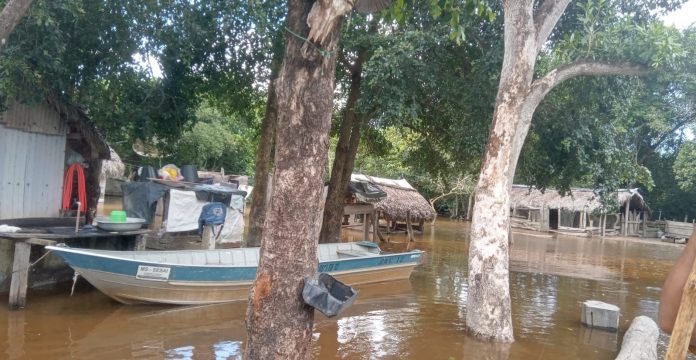 “Nossas casas dentro da água, nossa criação dentro da água, olha o jeito. Nossas galinhas aí também. E o jacaré, fico tomando de conta das nossas coisas, com medo né porque não tenho lugar enxuto”, lamentou a indígena Julita Gomes Guajajara.