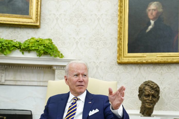 Pesquisa divulgada pelo ‘Washington Post’ no dia 4 de julho tem dados semelhantes aos do levantamento feito quando Biden completou 100 dias de governo. Entre os democratas, ele é aprovado por 94%, e entre os republicanos, por 8%. Presidente dos EUA, Joe Biden, durante encontro na Casa Branca