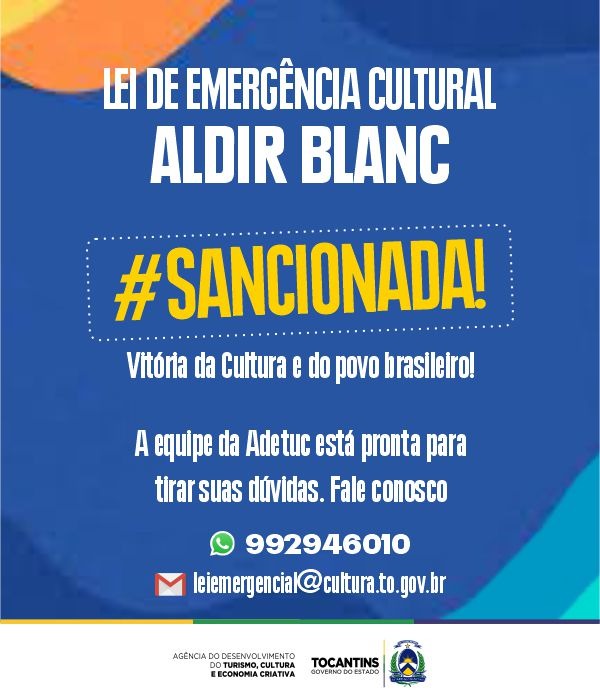 Com a sanção presidencial do projeto de Lei 1075, batizada como Lei Aldir Blanc, em homenagem ao compositor morto em maio, o setor cultural passa a ser financeiramente amparado neste momento em que as atividades artísticas estão suspensas para conter a propagação da Covid-19. Para o Estado do Tocantins, está previsto repasse de aproximadamente R$ 21,9 milhões.