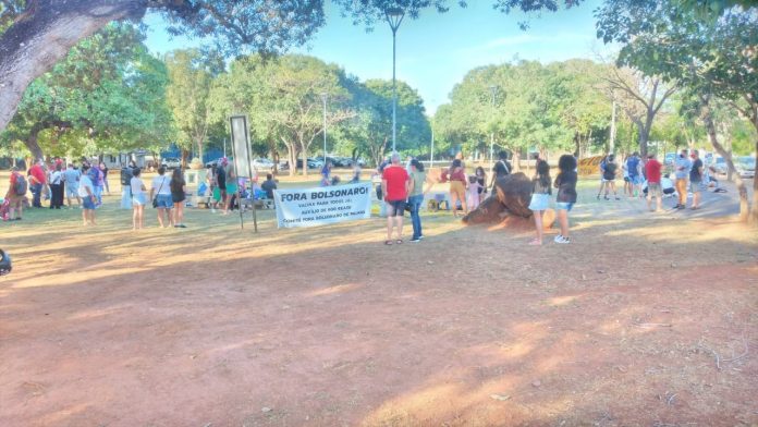 Manifestantes realizam um protesto na tarde deste sábado (3), em Palmas, contra o presidente Jair Bolsonaro (sem partido) e a favor da vacina. O ato começou por volta das 16h, no Parque dos Povos Indígenas. No local houve distribuição de máscaras de proteção.