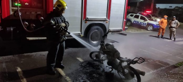 Uma moto foi destruída por um incêndio no setor Central em Araguaína, no norte do Tocantins, na noite desta quinta-feira (30). A suspeita da Polícia Militar é de que o fogo foi provocado por suspeitos que tentaram furtar o veículo, mas não conseguiram.