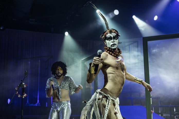 Renan Mattos à frente do elenco do musical de teatro ‘Ney Matogrosso – Homem com H’, encenado em São Paulo