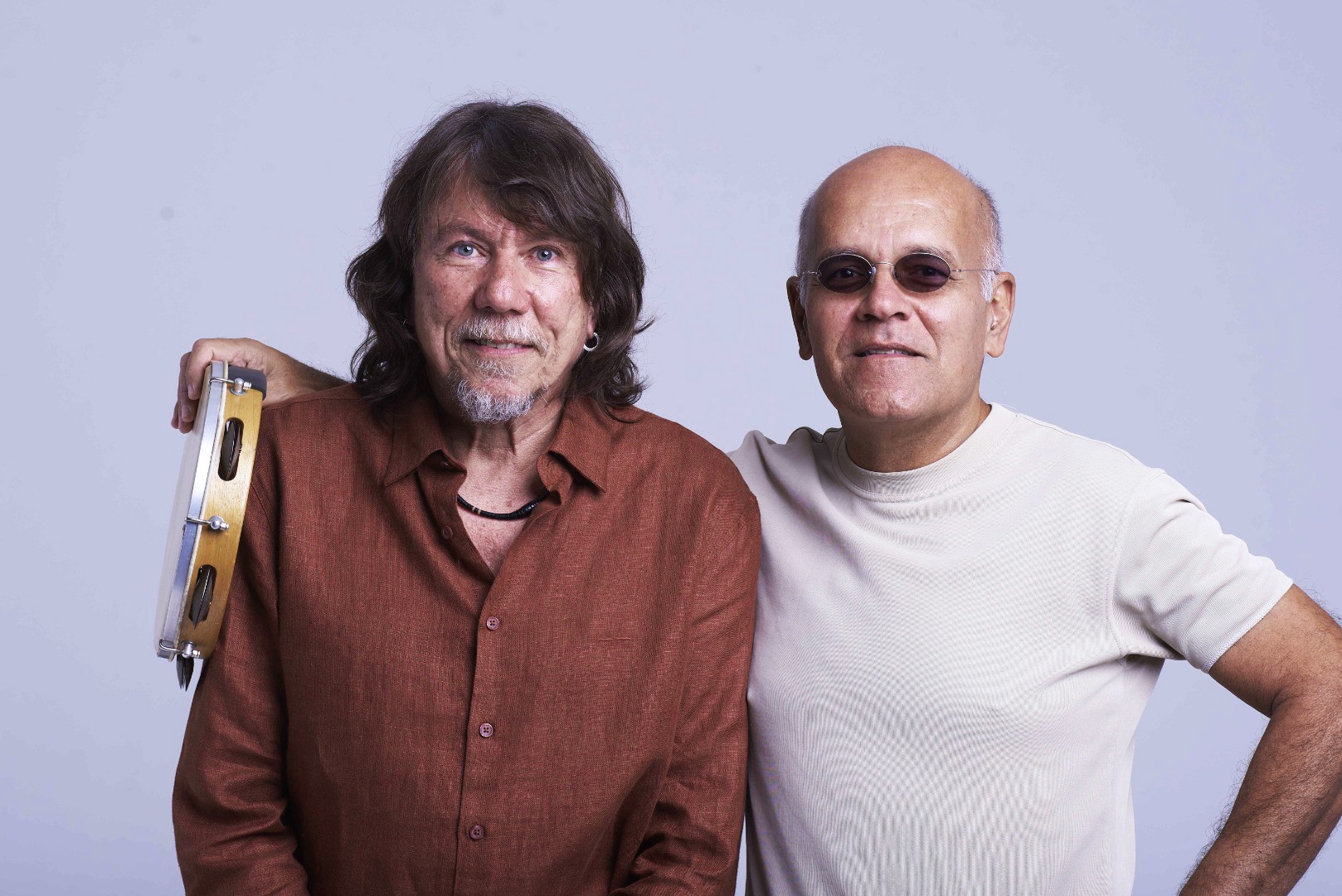 Imagem promocional da edição em LP de 2023 do álbum ‘Olho de peixe’, de Lenine e Marcos Suzano