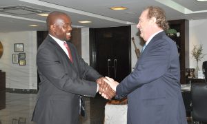 O governador do Estado do Tocantins, Mauro Carlesse, recebeu na tarde desta segunda-feira, 17, no Palácio Araguaia, o embaixador da África do Sul no Brasil, Ntshikiwane Joseph Mashimbye. O embaixador veio a Palmas participar de reuniões com representantes do Governo do Tocantins e da iniciativa privada para conhecer e discutir oportunidades de negócio entre o Tocantins e o seu país.
