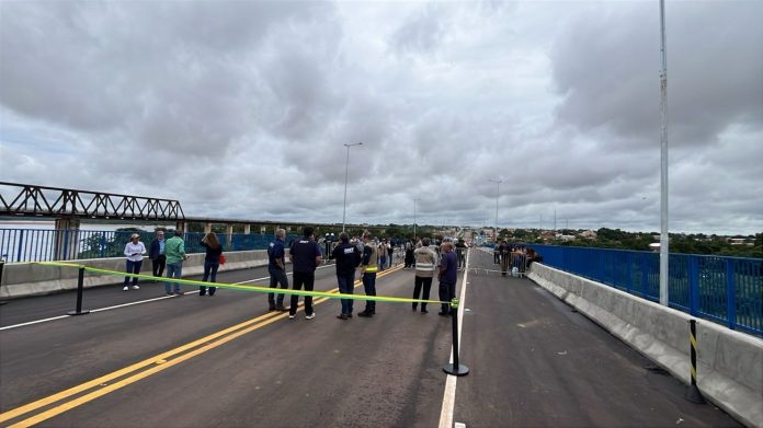 O trânsito sobre a nova ponte entre Estreito (MA) e Aguiarnópolis (TO) foi liberado no início da tarde desta segunda-feira (22). A cerimônia de inauguração contou com a presença do ministro dos Transportes, Renan Filho, e dos governadores do Tocantins, Wanderlei Barbosa (Republicanos), e do Maranhão, Carlos Brandão (PSB).