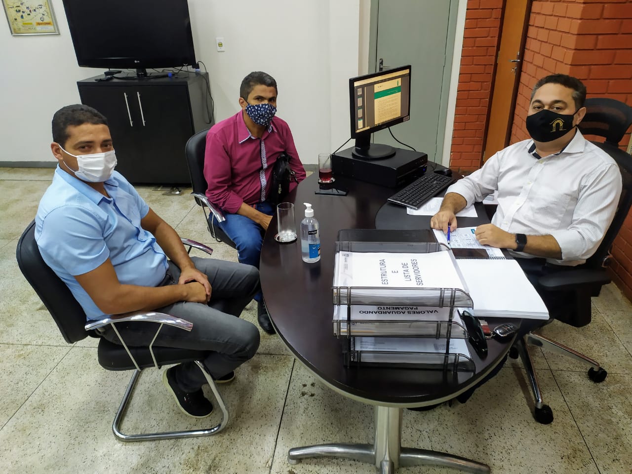 Roberto César (d) e Rodrigues de Souza, durante reunião com o presidente da Adetuc, Jairo Mariano