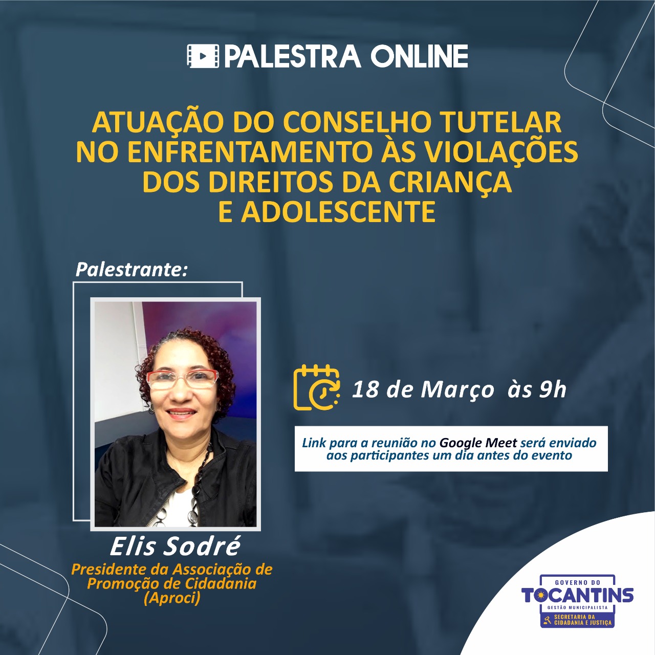 Ministrada pela Presidente da Associação de Promoção da Cidadania (Aproci), Elis Sodré, a palestra acontecerá de maneira virtual pela plataforma Google meet