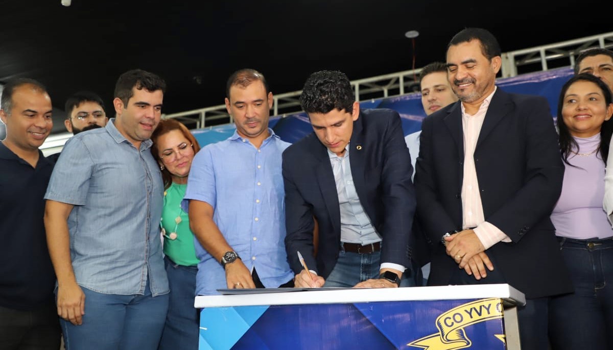Cerimônia ocorreu com a presença do governador Wanderlei Barbosa e do ministro da Infraestrutura Marcelo Sampaio. Ministro da Infraestrutura Marcelo Sampaio e governador Wanderlei Barbosa assinam documento
