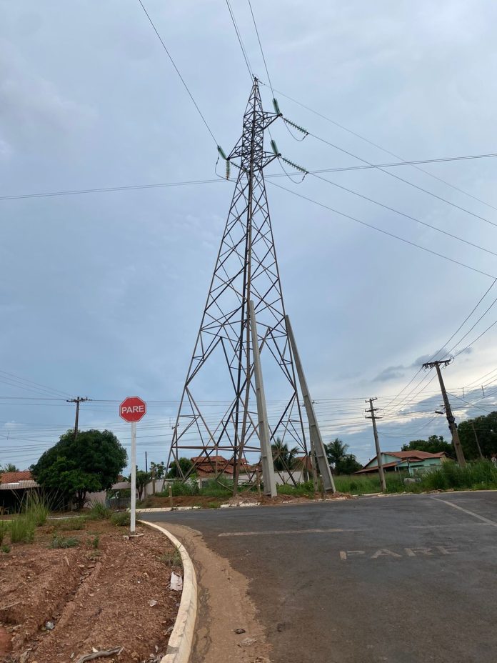 Torre de alta tensão da Energisa está escorada com postes e MPE diz que há risco de cair sobre casas