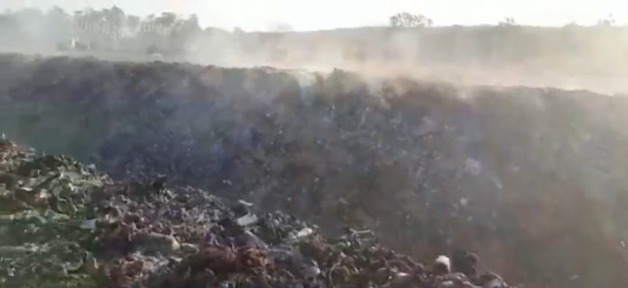 O aterro fica na entrada da cidade. As imagens mostram que os resíduos de uma das valas foram totalmente queimados. Também é possível ver muita fumaça saindo do local.