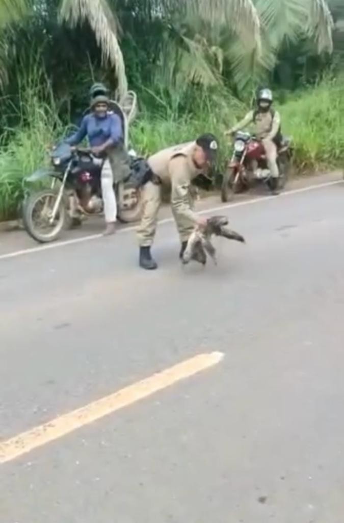 É possível ver em um vídeo divulgado pela Polícia Militar (PM), nas redes sociais, que a preguiça estava no meio da via, andando lentamente. Um militar pegou a preguiça pelo pescoço e a deixou em uma região de mata que fica ao lado da rodovia. Aparentemente, o animal não apresentava ferimentos.
