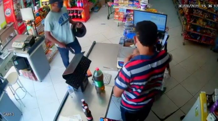 Imagens que circulam nas redes sociais mostram o crime. No vídeo, dois homens passam algumas mercadorias no caixa. No momento de pagar pelos produtos, eles anunciaram o roubo e surpreendem a funcionária.