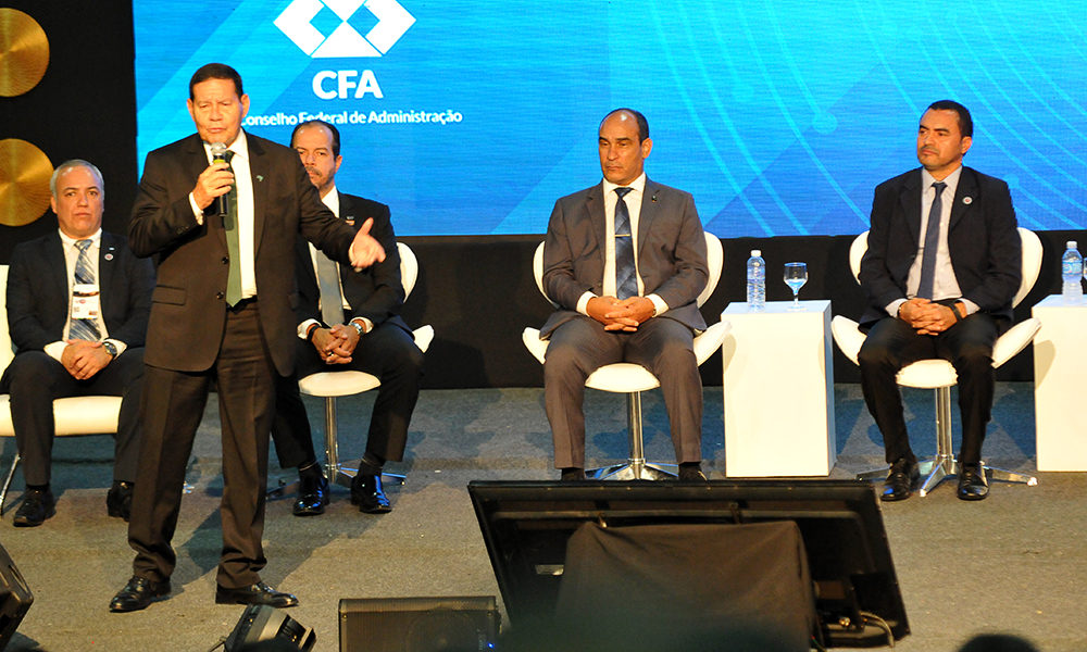 O evento contou com a presença do Vice-Presidente da República do Brasil, General Hamilton Mourão, que abordou os aspectos relevantes do empreendedorismo e oportunidades no ramo da Administração.
